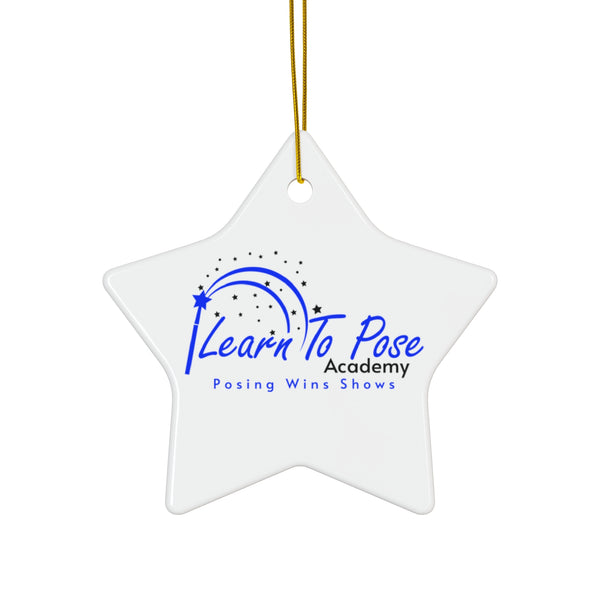 This learn to pose academy holiday ornament features vibrant colors and a glossy finish, making it a festive addition to any Christmas tree. The solid one-piece construction ensures durability, and it comes with a gold-toned hanging string for easy display. Perfect for those looking to add a personalized touch to their holiday decor.