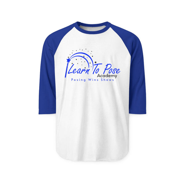 A stylish and comfortable raglan shirt featuring the "Learn To Pose Academy" design. Perfect for those looking for a relaxed fit with 3/4 length sleeves. Ideal for anyone interested in bodybuilding posing. Great for casual wear or as a unique gift for competitors or aspiring competitors. Makes a great gift for the holidays and events.